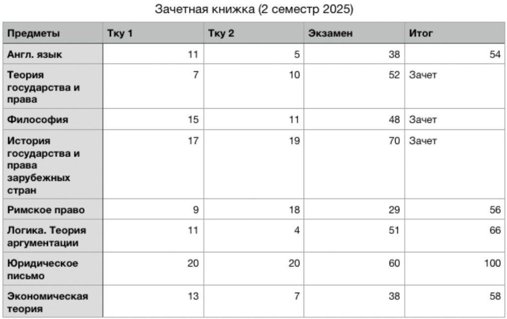 Зачетная книжка